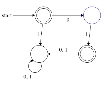 지난시간에 본 Problem X1을 DFA로 나타내면 다음과 같다.