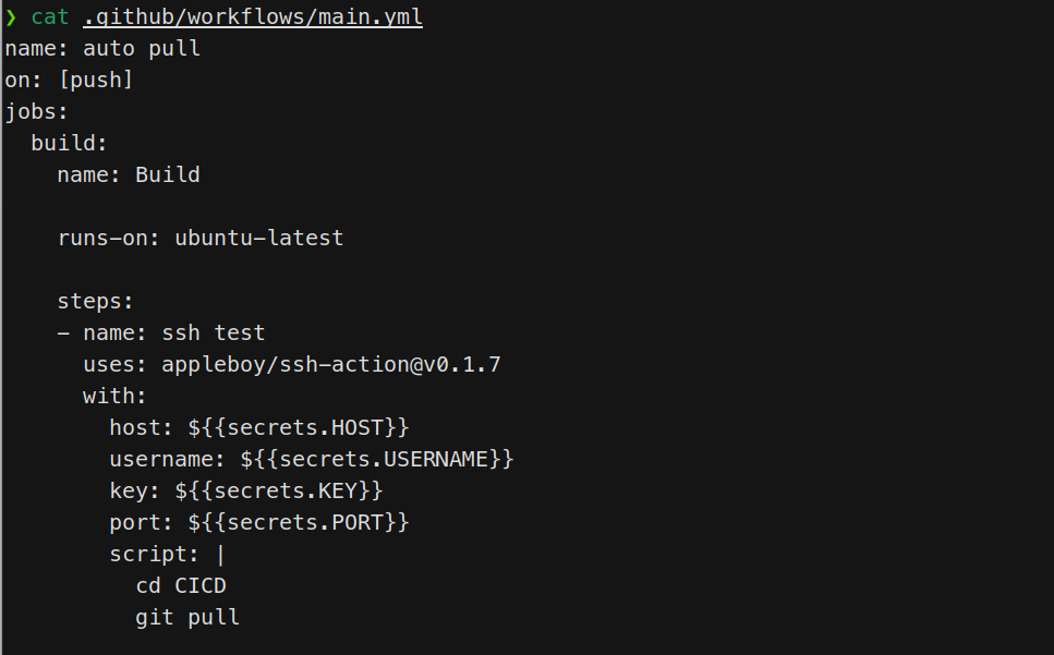 아무래도 깃허브에 올라가는 파일이기때문에 HOST와 USERNAME, KEY, PORT는 숨기는게 좋다.