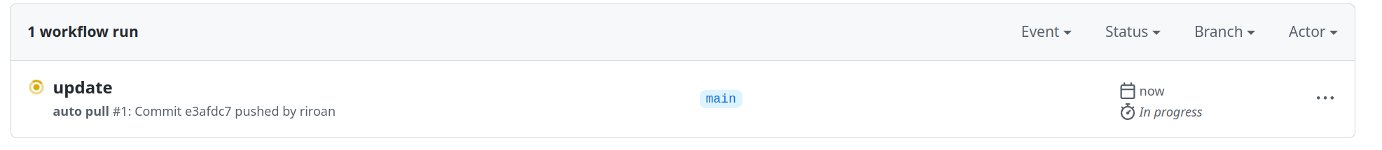 따로 pull을 안해줘도 자동으로 github actions에서 pull 해준 것을 알 수 있다.