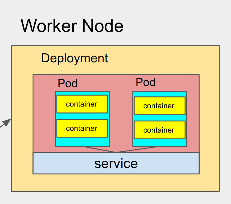 Deployment: pod를 배포하기 위한 객체이다. 하나의 deployment에는 여러개의 pod가 들어있을 수 있고 하나의 워커노드에 여러개의 deployment가 있을 수 있다.