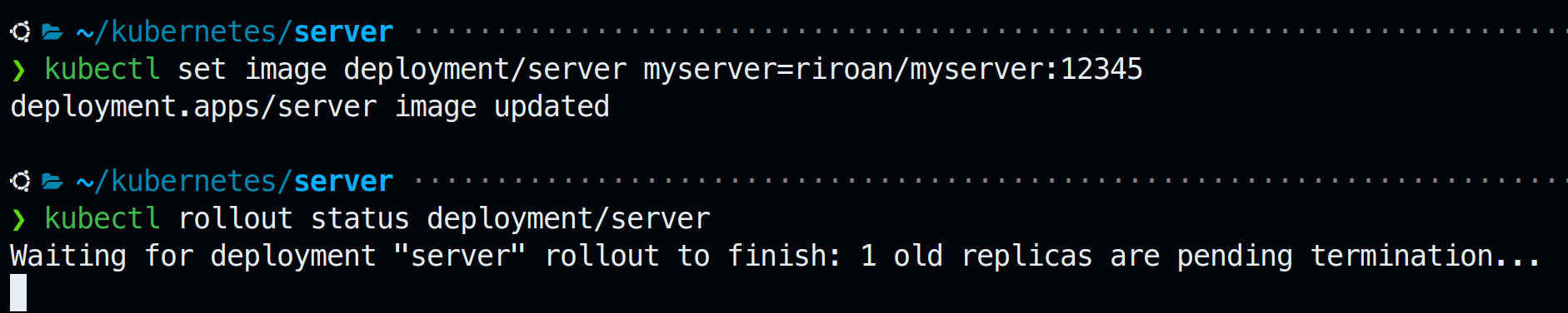 kubectl set image deployment/server myserver=riroan/myserver:12345