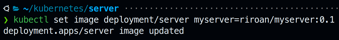 kubectl set image deployment/server myserver=riroan/myserver:0.1