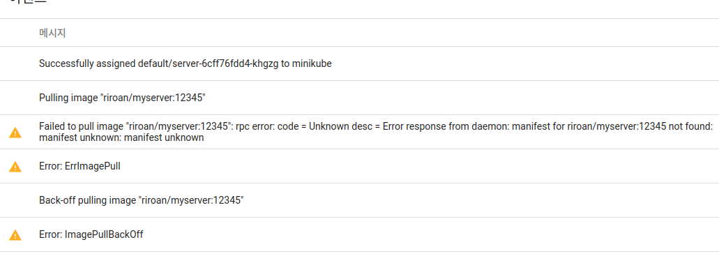 riroan/myserver:12345 이미지는 존재하지 않는다.