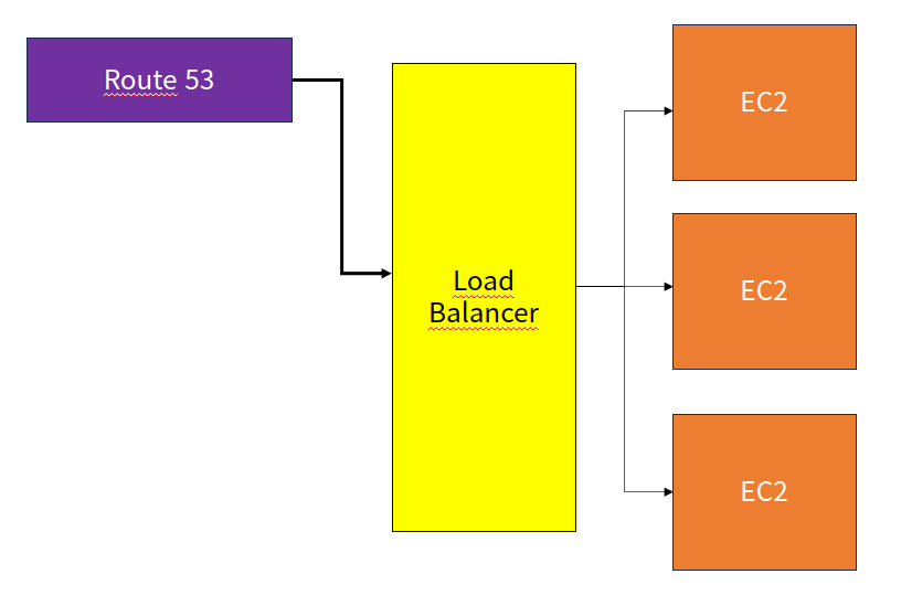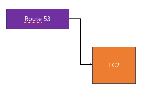 가장 생각하기 쉬운 구성이다. EC2에 우리의 애플리케이션을 띄운 후 Route 53으로 도메인을 걸어주는 방식이다. 가장 간단한만큼 문제점도 많다. 일단 오토스케일링이 안된다. 오토스케일링을 위해 EC2를 띄우면 새로운 도메인을 할당해야 하므로 사용하기 힘들다. 오토스케일링이 안되면 대규모 트래픽을 감당하기 힘들기 때문에 어느정도 사용량이 많아지면 상황이 많이 안좋아진다.