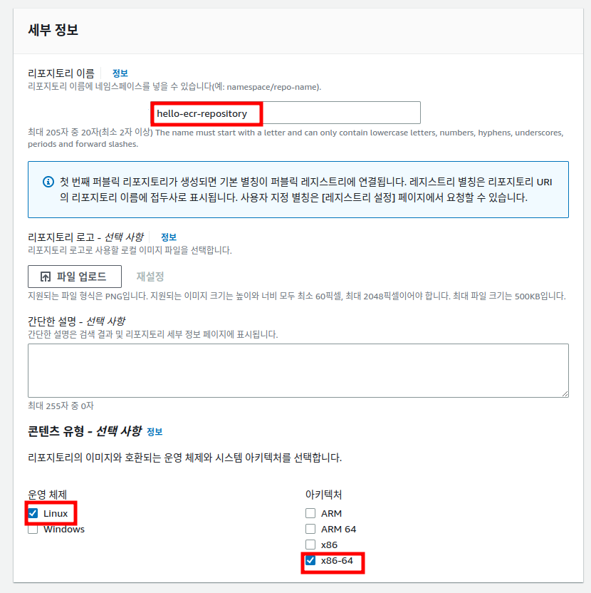 도커 이미지를 저장할 레포지토리를 만들어야 한다. CLI로도 만들 수 있지만 귀찮으니 대시보드에서 진행하자.