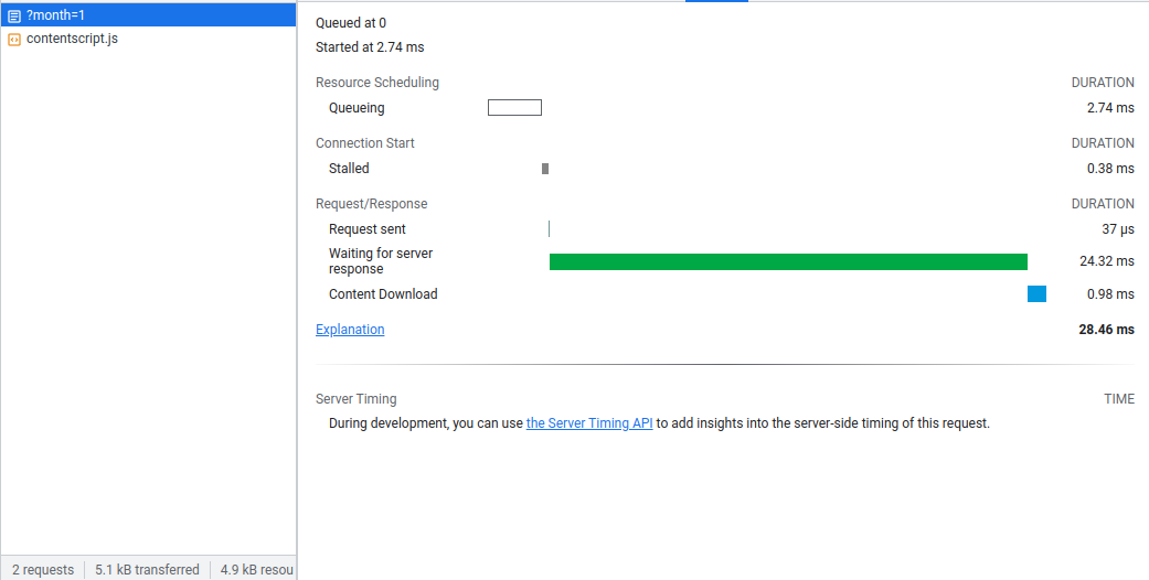 크롬으로 10월에 해당하는 API를 직접 호출했는데 약 30ms가 나왔다. 그렇다면 여기에서 레디스를 추가하면 어떨까?