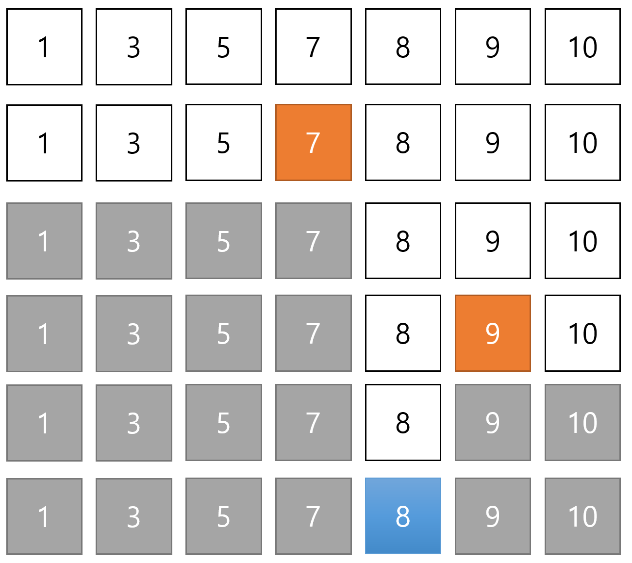 만약 배열이 arr = [1,3,5,7,8,9,10]이 있다고 하자.