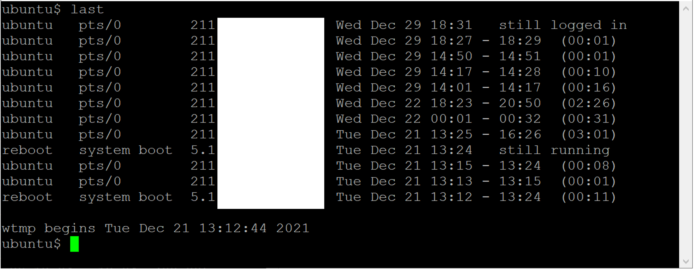접속에 성공한 기록을 확인하려면 다음 명령어를 입력한다