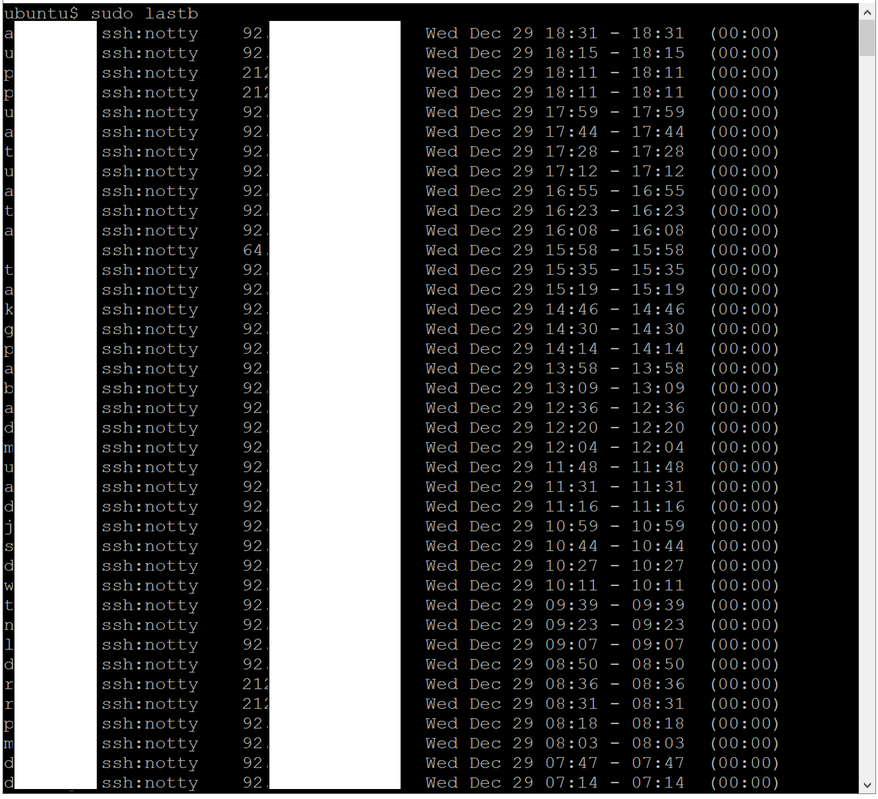 수많은 사람이 나의 인스턴스에 접속 시도한 기록을 확인할 수 있다.(실제로 아이피를 검색해보면 중국, 미국등 다양한 나라에서 접속시도를 한다.)