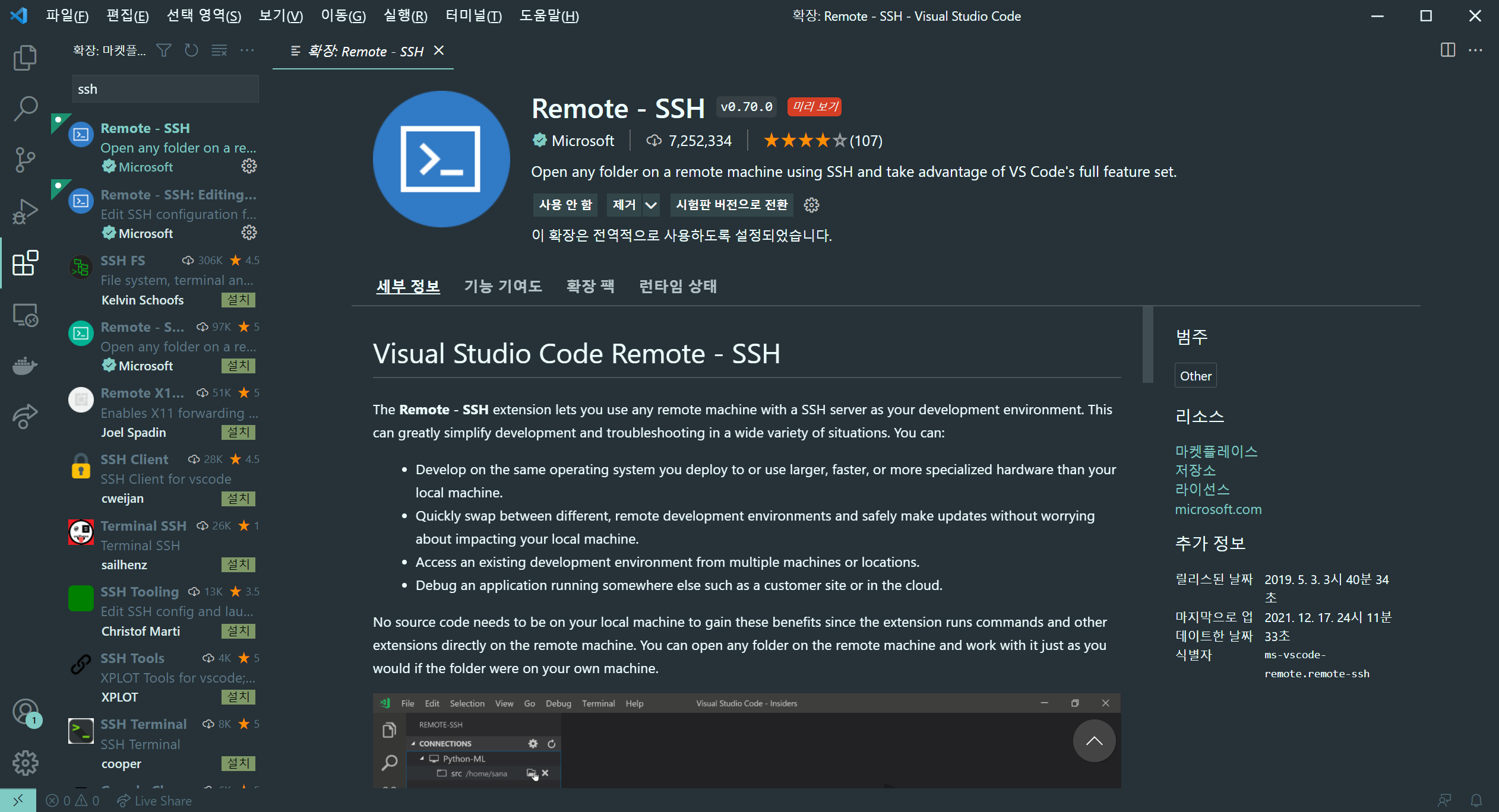 다음시간부터 Dockerfile을 작성해서 이미지를 빌드할건데 현재는 putty를 이용하여 EC2인스턴스에 ssh접속을 했지만 cli에디터(nano, vim)를 사용하기 불편하므로 vscode를 사용해 작성하고자 한다.