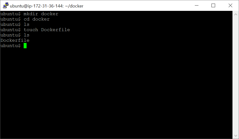 우선 빈 폴더를 하나 만들어서 안에 Dockerfile라는 이름의 파일을 생성한다. (스펠링이 맞아야 한다!)
