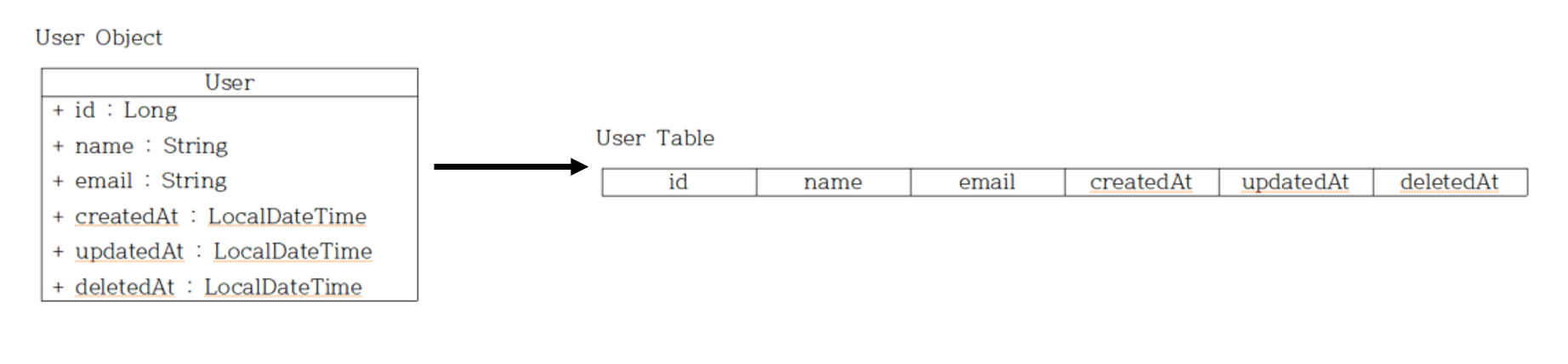 Object Relational Mapping(ORM) : Object $\leftrightarrow$ Relation(Table)