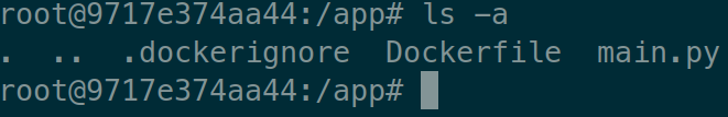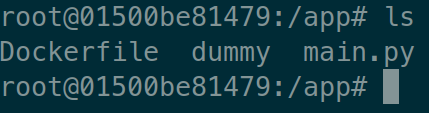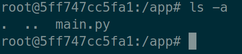 이를 실행하고 컨테이너 내부 /app폴더로 들어가보자.